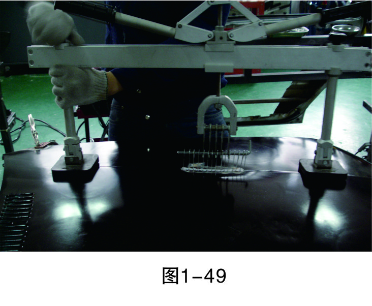 步驟5(直線焊接):把介子焊接成一條直線,為之后使用整形架做好準(zhǔn)備,如圖1-46所示。