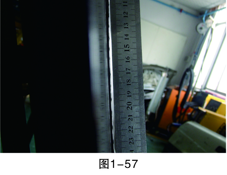 步驟16(檢查修復(fù)效果):用直尺測(cè)量修復(fù)平面與完好平面是否在同一平面上。如圖1-57所示,修復(fù)平面與完好平面還有一定的誤差。