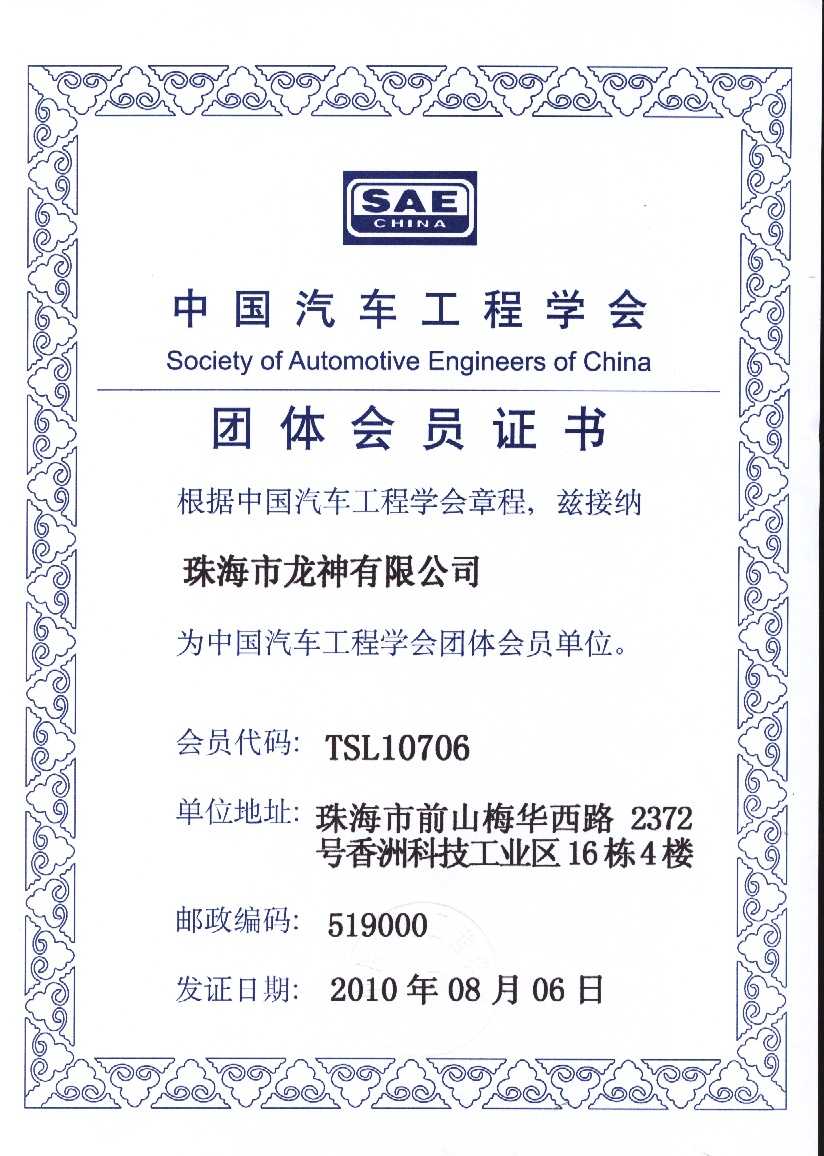 會員證書 會 員 證 書2020年廣東省汽車保修設(shè)備商會-監(jiān)事單位中國汽車工程學(xué)會團體會員證書中國汽車維修行業(yè)協(xié)會會員證珠海市人民對外友好協(xié)會第二屆理事會團體會員 2012-11-27 35070
