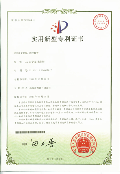 ![]() 噴槍清洗機(jī)專利證書 | ![]() 無靜電干燥加熱器專利證書 |