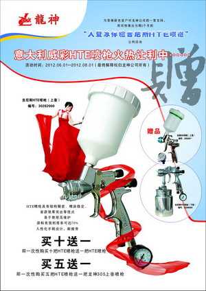 吉尼斯HTE噴槍“初春送?!贝黉N活動方案 2013-03-01 28068 吉尼斯HTE噴槍“初春送?!贝黉N活動方案 (產(chǎn)品編號:30282000-30286000) 2013年3月份市場促銷方案如下:一、主題:“初春送福”噴槍大讓利。二、活動時間:1、 時間:2013年03月1日至2013年05月1日 2、 時長:共計2個月 三、活動內(nèi)容:1、 買十送一(即一次購買十把HTE噴槍送一把HTE噴槍)2、 買五送一(即一次購買五把HTE噴槍送一把龍神305噴槍)四、具體操作方案 1、購買十把HTE噴槍送一把HTE噴槍 2、買五把HTE噴槍送一把龍神305噴槍 (以上二個方案具體促銷方式可按增量的形成搭配)